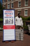 Alternative Monuments are performative monuments that add to the national conversation surrounding Confederate Monuments. Our monuments are productive because they neither affirm nor condemn traditional Confederate monuments; instead, our monuments add to the country’s overall narrative about the Civil War. Our exhibition consists of three vignettes: 1. Henry “Box” Brown’s unboxing with a box built according to historic specification; 2. Thirty feet of moving panoramic murals depicting the actual scenes commissioned by Brown and drawn by Charles C. Green. (The moving panorama is powered by a hand-crank which can be turned readily should attendees desire to interact with the exhibit.); and 3. A tableau vivant of Ellen Craft’s famous engraving depicting the costume she wore when she and husband, William, escaped from the plantation they were enslaved on in Macon, GA.